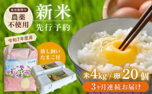 【全3回定期便】【令和7年度米】4kg・放し飼いたまご20個セット ヒノヒカリれんげ米 元気たまご【浅田峠自然塾】 [EA20]