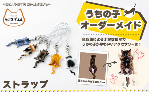 - うちの子オーダーメイド ストラップ 45P7307 / 東北 秋田 大館 猫 ネコ ねこ 猫グッズ ネコグッズ ねこグッズ アクセサリー 雑貨 プレゼント オーダーメイド オーダー オリジナル 1点もの ストラップ