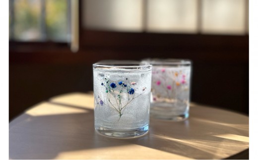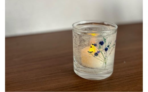 - ロスフラワーで作る、かすみ草のキャンドルホルダー 【ブルー&パープル】