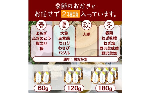 - 季節のおかき 60g (30gx2個)|ふるさと納税 松本市 長野県 信州 おかき せんべい 煎餅 米菓 おせんべい 国内産米 お菓子 素材