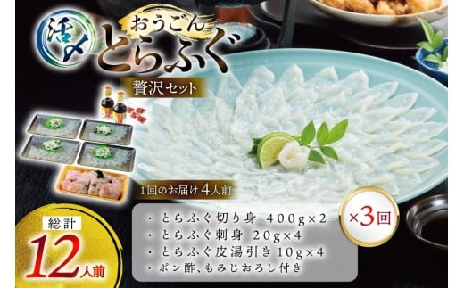 - ふぐ 刺身 ふぐ鍋セット 活〆 おうごんとらふぐ 贅沢セット 4人前 3回 定期便 [松永水産 長崎県 平戸市 hr42bgy400074] ふぐ刺し とらふぐ フグ 河豚 てっさ てっちり ふぐ鍋 湯引き 魚介 さかな お刺身 刺身用 さしみ 冷凍 海鮮