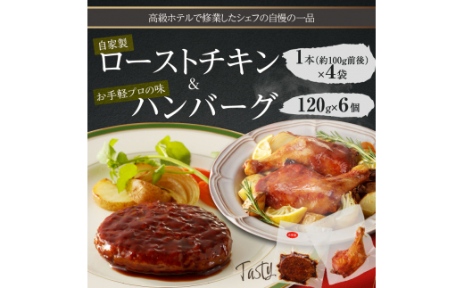 自家製ローストチキン 1本×4袋&お手軽プロの味のハンバーグ 1人前120g×6個