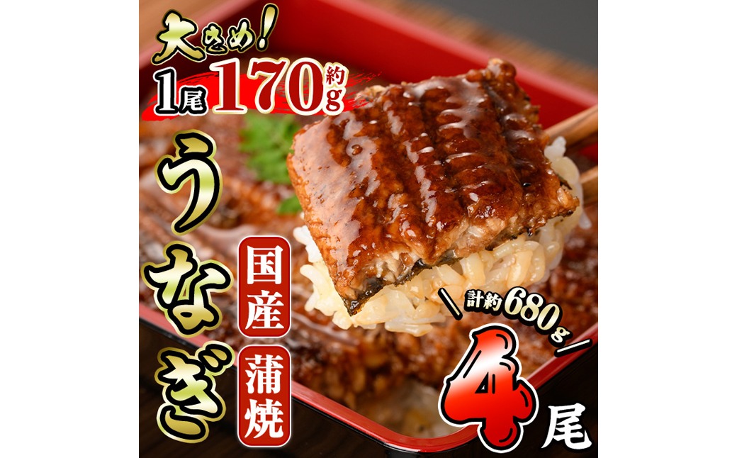 - 国産 うなぎ 蒲焼 (約170g×4尾) 鰻 タレ かば焼き うな重 うな丼 ひつまぶし 小分け 真空包装 真空パック 【丸正水産】【AW-18】