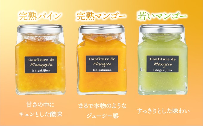 - 手作りコンフィチュール三種セット(完熟マンゴー、若いマンゴー、完熟パイン)PI-006