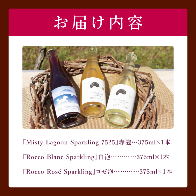 スパークリングワイン「泡3種セット」|ワイン スパークリングワイン ボトルワイン 酒 お酒 酒類 ボトル ぶどう ブルーベリー ロゼ セット ワインセット 茨城県 行方市(GQ-6)