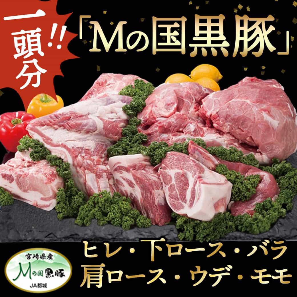 【ふるさと納税】「Mの国黒豚」1頭分32.6kg- ヒレブロック/下ロースカツ用/バラブロック/下ロースしゃぶしゃぶ用/肩ロースブロック/バラしゃぶしゃぶ用/ウデ・モモ切り落し 送料無料 MD-0102【宮崎県都城市は2年連続ふるさと納税日本一!】