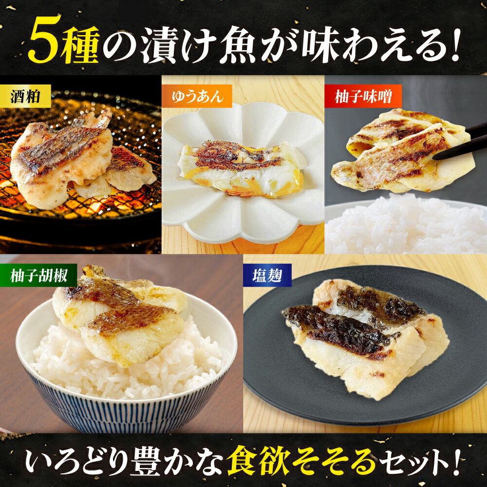 【ふるさと納税】【12回定期便】漬け魚5種(柚庵漬け/酒粕漬け/塩麹漬け/柚子味噌漬け/柚子胡椒漬け)※魚種は旬の魚をおまかせ 五島市/金沢鮮魚[PEP032]