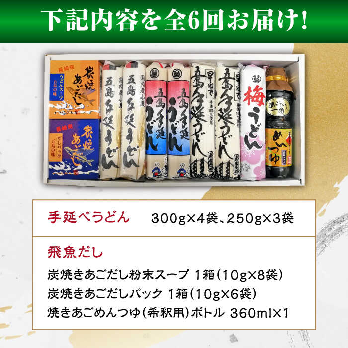 - 【ふるさと納税】【6回定期便】五島手延べうどん厳選「食べくらべ(4種)」と飛魚だし詰合せ あごだしスープ 乾麺 麺 飛魚 五島うどん 五島市/中本製麺[PCR024]
