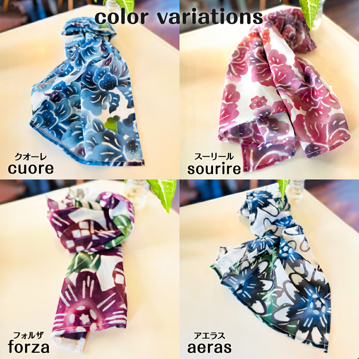 - 【ふるさと納税】ショートストール 選べるカラー【クオーレ、スーリール、フォルザ、アエラス】 | 紅琉 BINRYU アラヤプランニング株式会社 | 伝統工芸 びんがた 紅型 | テキスタイル 花柄 柄 | シフォン ストール 軽い 華やか 春 夏 秋 | 沖縄 宜野湾市 送料無料