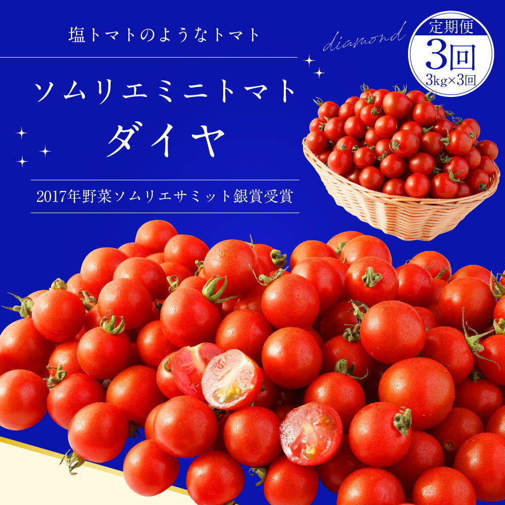 - 【ふるさと納税】【年3回定期便/2026年1月上旬発送開始】熊本県 ソムリエミニトマト ダイヤ 3kg×3回 合計9kg ソムリエ トマト とまと ミニトマト 野菜 旬 新鮮 塩 塩トマト 定期便 熊本県 冷蔵 送料無料