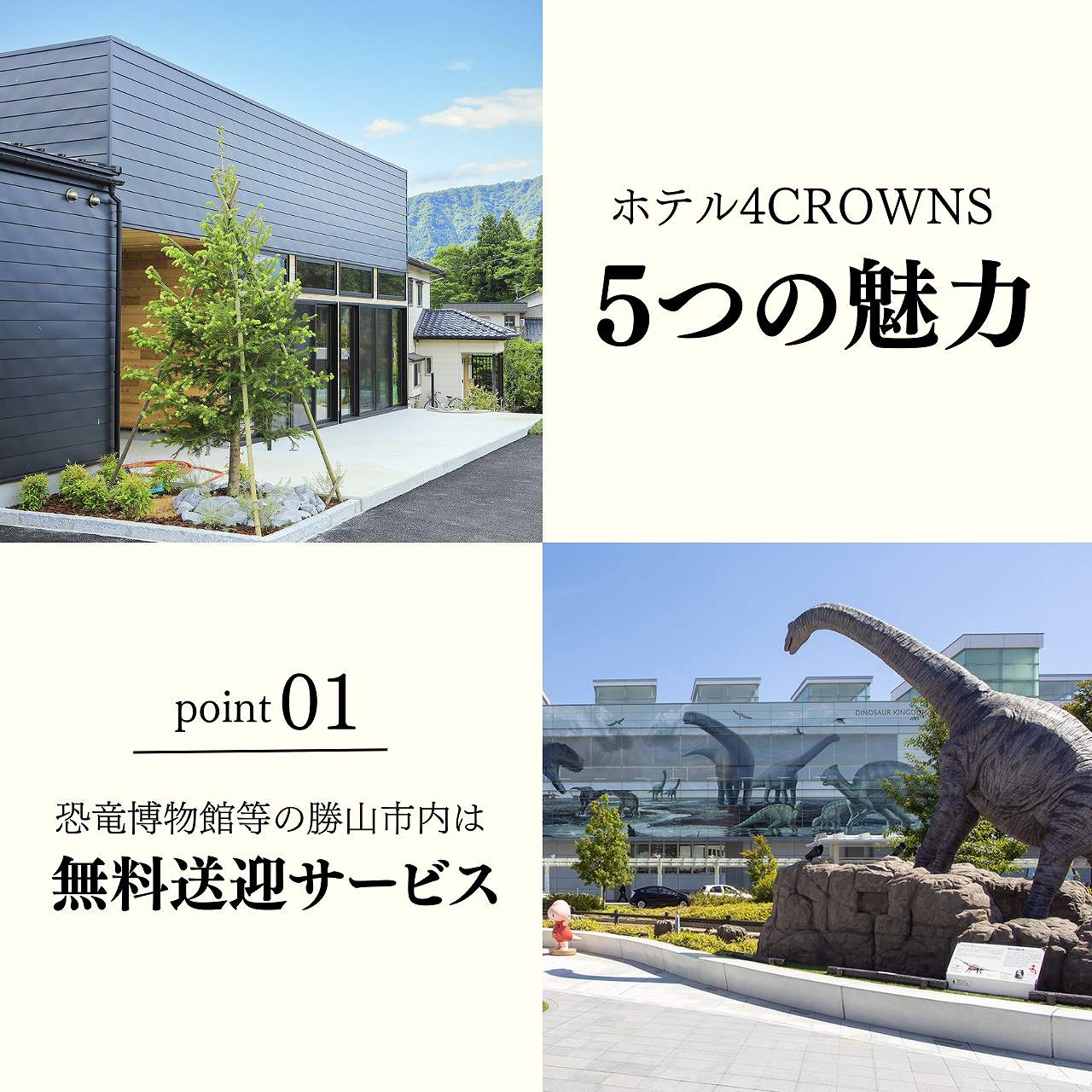 - 【ふるさと納税】 HOTEL4CROWNS ご宿泊クーポン券5,000円分 │ 福井県 勝山市 宿 宿泊 ホテル 宿泊施設 1日最大3組まで 一棟貸し貸切も可 ペット可 ペット同伴 人工温泉 檜風呂 サウナ 食事付き ドリンクバー 無料送迎 5000円分