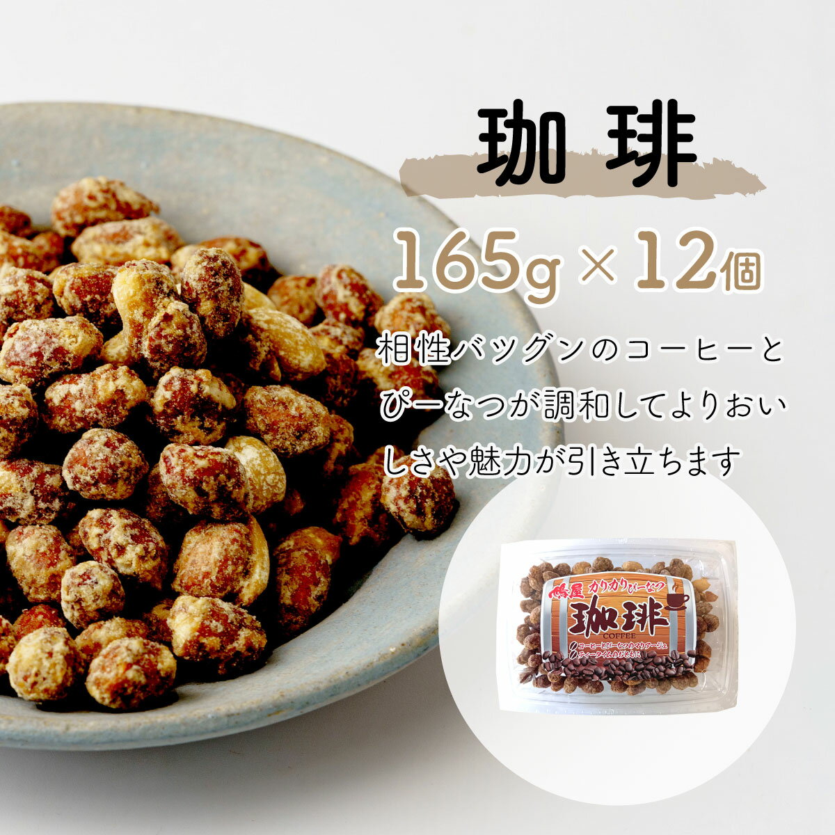 【ふるさと納税】ピーナッツ 珈琲 おつまみ 165g×12個 | 落花生 珈琲 ピーナツ ピーナツ おつまみ coffee お菓子 おやつ 落花生 ピーナッツ 軽食 酒のおつまみ 家飲み ビール 間食 味噌 鳩屋 埼玉県 北本市