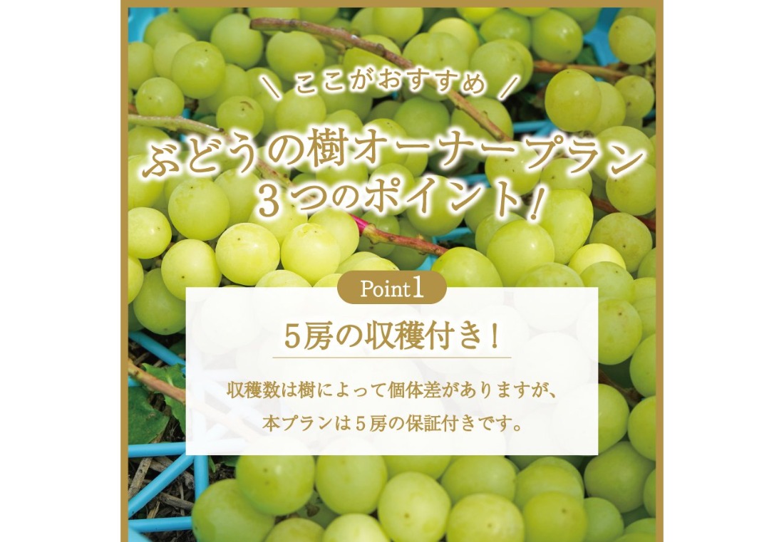 - 【ぶどうの樹 オーナー制度】シャインマスカット 1シーズンオーナープラン(2022年植付け) 5房保証付き 栽培 収穫 体験 契約 ぶどう狩り 果物 フルーツ 山梨 富士吉田