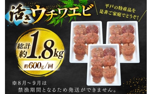 - 活 うちわえび エビ 海老 海鮮 3回 定期便 ウチワエビ 5~8尾(約600g) 総計1.8kg [ひばり 長崎県 平戸市 hr42bgy420156] 魚介 海産物 鍋 刺身 刺し身 新鮮 国産 お取り寄せ