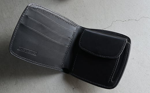 コードバン & ブッテーロ シェル型二つ折り財布 (ブラック) F5J-1058