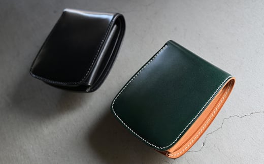 - コードバン & ブッテーロ シェル型二つ折り財布 (ブラック) F5J-1058