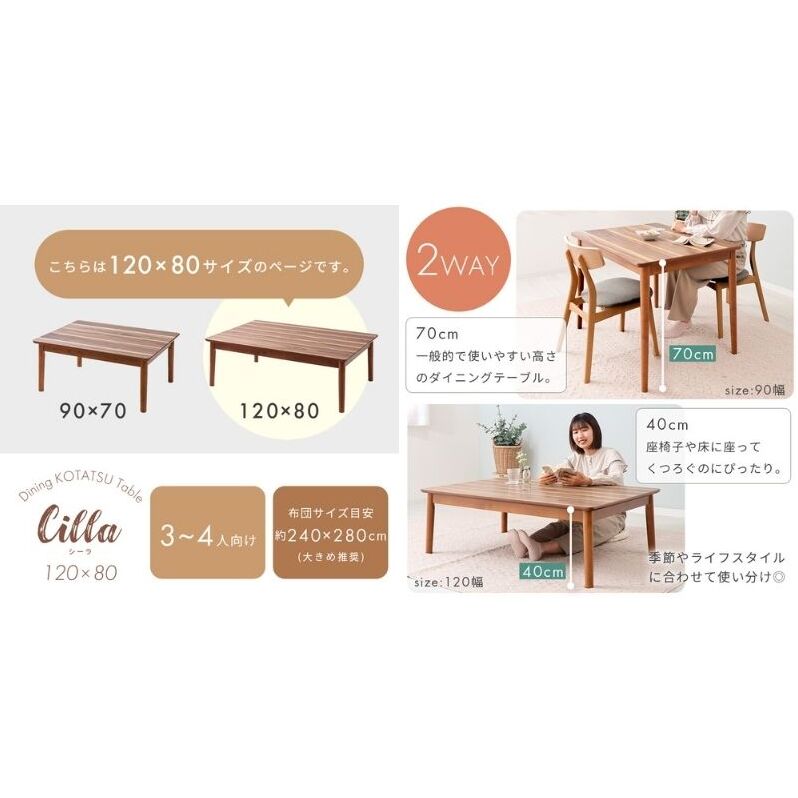 - 継ぎ脚ダイニングこたつ Cilla(シーラ) 120×80幅 インテリア 家具 キッチン おしゃれ 暖房 コタツ