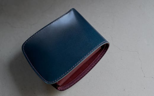 - コードバン & ブッテーロ シェル型二つ折り財布 (ディープブルー) F5J-1056