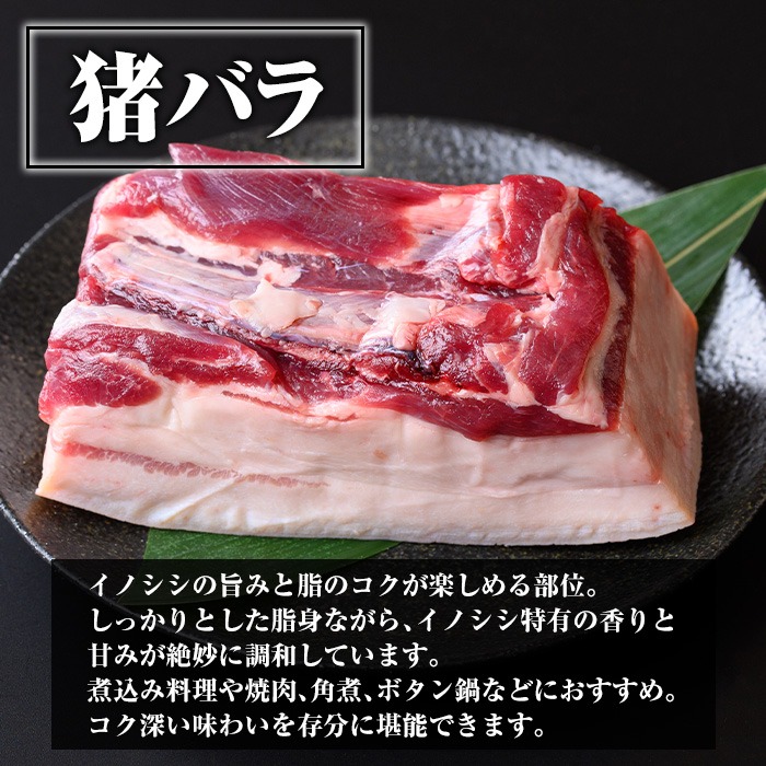 - isa783 【訳あり】伊佐ジビエ イノシシ肉ブロック各種8Pセット・合計約2.4kg(バラ2P・ロース2P・モモ4P) 伊佐 ジビエ お肉 バラ ロース モモ ブロック セット イノシシ いのしし 猪 ボタン鍋 ぼたん鍋 BBQ ソテー 煮物 カレー 【伊佐市有害鳥獣処理施設運営委員会】