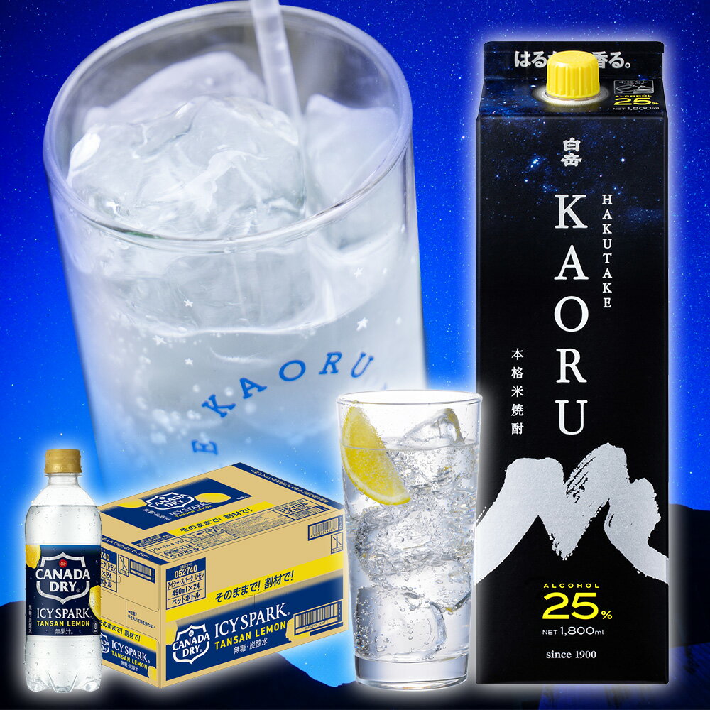 【ふるさと納税】球磨焼酎と炭酸でソーダ割りセット!KAORU 1.8Lパック×2本 + アイシースパークレモン 490mlPET×24本 パック 酒 お酒 アルコール 25度 焼酎 炭酸水 ソーダ割り セット 球磨焼酎 ハイボール 常温 九州 熊本県 送料無料