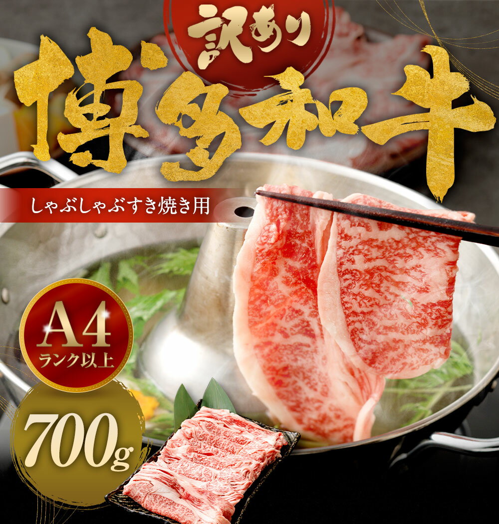 【ふるさと納税】【訳あり】博多和牛 しゃぶしゃぶ すき焼き用 (肩ロース肉 ・ 肩バラ肉 ・ モモ肉) 700g 黒毛和牛 和牛 牛肉 牛 お肉 肉 しゃぶしゃぶ用 すき焼き すきやき 肩ロース 肩バラ モモ 小分けパック 訳アリ わけあり 理由あり 冷凍 福岡県 岡垣町 送料無料