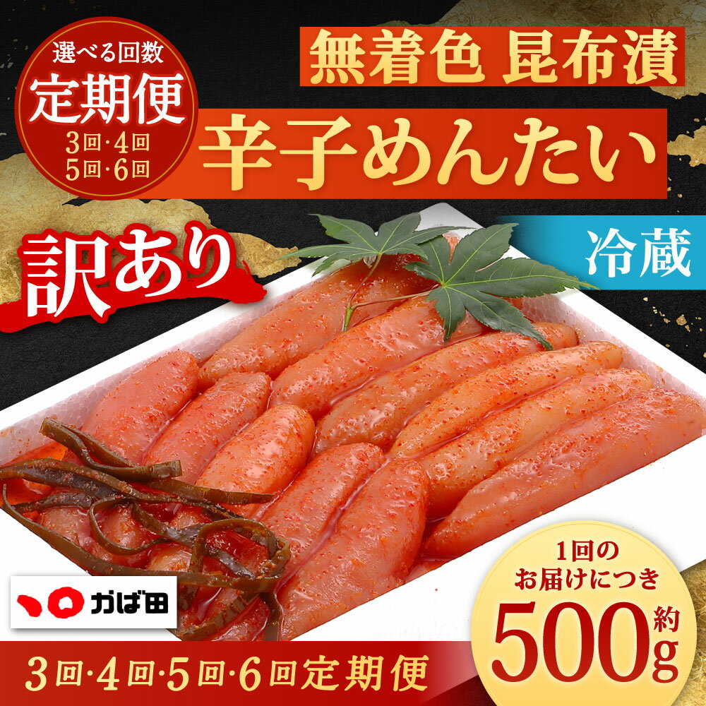 【ふるさと納税】【訳あり】無着色 昆布漬 辛子めんたい 1回のお届け約500g 選べる回数 3ヶ月定期便 / 4ヶ月定期便 / 5ヶ月定期便 / 6ヶ月定期便 めんたいこ 辛子明太子 おかず 魚卵 ご飯のお供 肴 明太子 プチプチ 昆布 こんぶ 冷蔵 かば田食品 福岡県北九州市