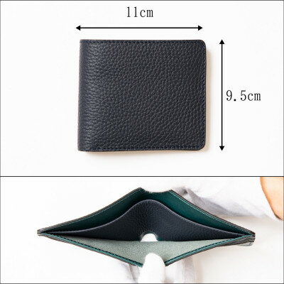 【ふるさと納税】HEDGE 国産牛革を使用した二つ折り財布[ダブルカードタイプ]ネイビーのシックなデザイン【1677791】