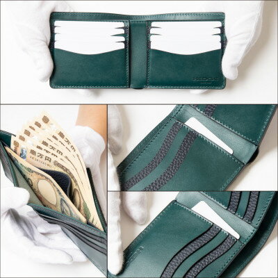 - 【ふるさと納税】HEDGE 国産牛革を使用した二つ折り財布[ダブルカードタイプ]ネイビーのシックなデザイン【1677791】