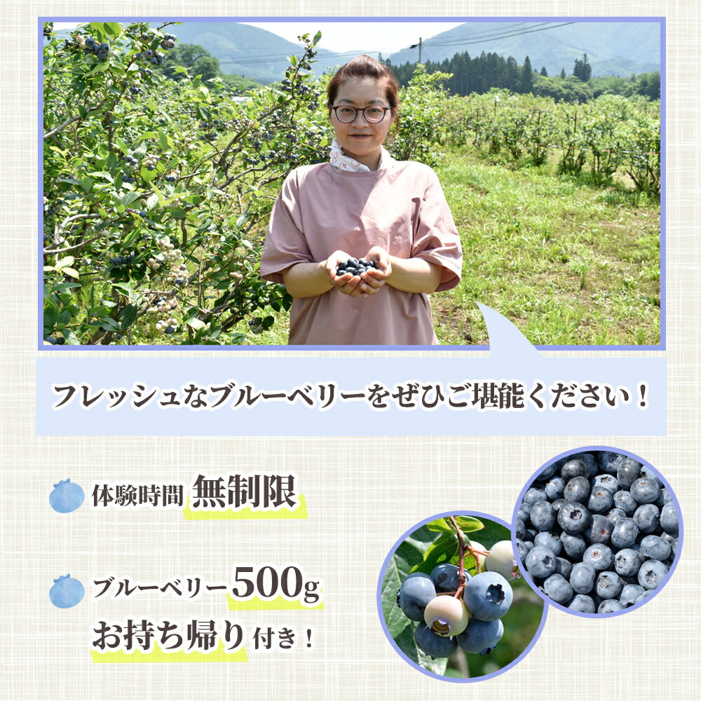 【ふるさと納税】《 令和8年度 》 ブルーベリー 狩り 1名様~6名様(持ち帰り500g付き) 体験 チケット イベント 7月 無制限 食べ放題 フルーツ 果物 旬 国産 生 500g ペアチケット 1人 2人 3人 4人 5人 6人 秋田県 ふるさと 秋田 鹿角市 送料無料 【としま農園】
