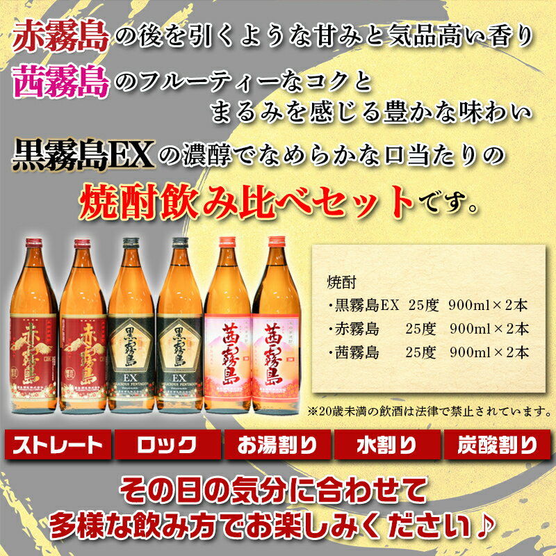 特選霧島飲み比べ(25度)900ml×6本セット ≪みやこんじょ特急便≫ - 霧島酒造 芋焼酎 黒霧島EX 赤霧島 茜霧島 25度 各900ml×2本 計6本セット 全国で愛されている芋焼酎をお楽しみください 送料無料 22-4101【宮崎県都城市は令和4年度ふるさと納税日本一!】