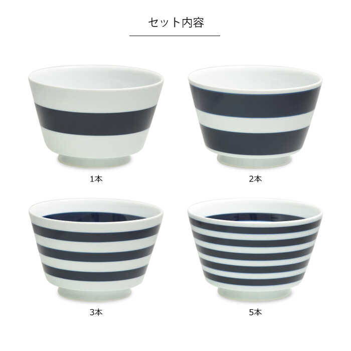- 波佐見焼 ボーダーボーダーどんぶり 4柄セット natural69