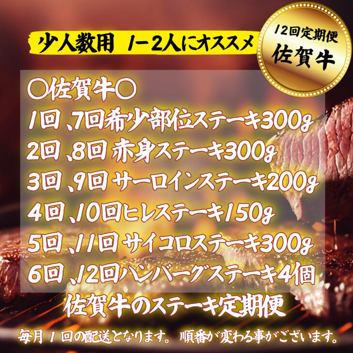 【ふるさと納税】【定期便 全6回~12回】【少人数用】佐賀牛のステーキ定期便 全6回 or 12回 希少部位 赤身 ヒレ サーロイン サイコロステーキ ハンバーグ 佐賀市 佐賀牛 黒毛和牛:B790-010