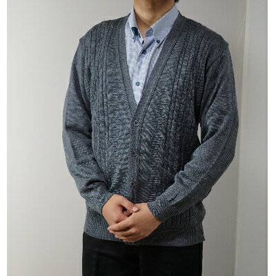 【ふるさと納税】メンズニット カーディガン グレー L寸 15160【1219776】