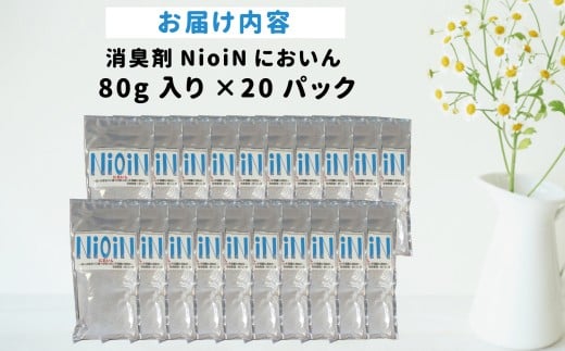 消臭剤 NioiN においん 80g×20 消臭 | ニオイン トイレ 靴箱 車 ペット アンモニア たばこ 化学物質不使用 子ども 福島県 新地町