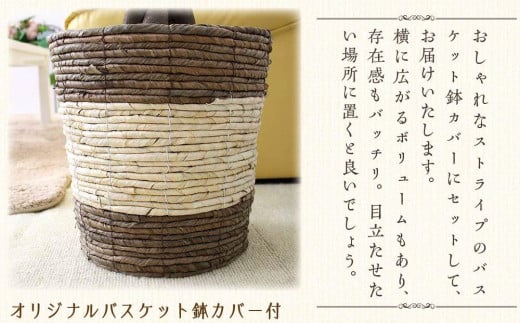 - オーガスタ 8号 ストライプバスケット鉢カバー 土の表面:ウッドチップ 【観葉植物 植物 オーガスタ バスケット 鉢付 インテリア 部屋 室内 オフィス 癒し エコ グリーン マイナスイオン リラックス オシャレ おしゃれ ギフト プレゼント 贈り物 人気 おすすめ 福岡県筑前町 送料無料 AG033】