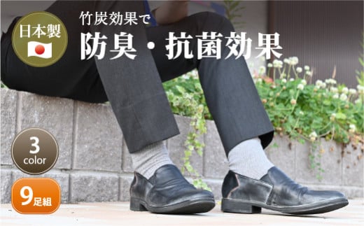 竹紀行カジュアルソックス(3色9足)《 防臭 抗菌 保温 ブラック 9足組 ギフト 高機能ソックス 》【2402T02311】
