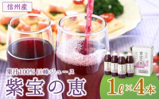 信州産 巨峰ジュース 「紫宝の恵」 ストレート果汁100% (1L×4本) | 葡萄 ぶどう ブドウ グレープ 果物 フルーツ ストレート ジュース 飲料 飲み物 ドリンク 瓶 人気 おすすめ お取り寄せ ギフト プレゼント 贈答品 信州 長野 千曲市