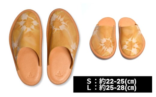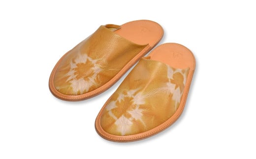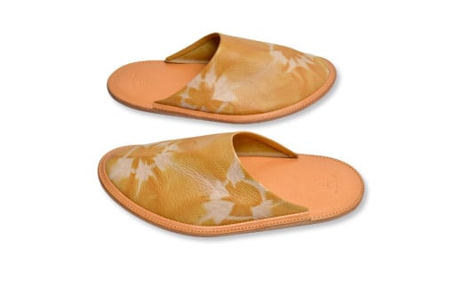 - 信州鹿革:杏染革ルームスリッパ(S)| 本革スリッパ レザー ルームシューズ あんず染め 千曲市 長野県産 信州