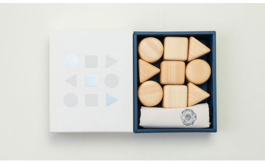 - 木のおもちゃ つみき 積み木 セット 木製 9個 知育玩具 男の子 女の子 ギフト プレゼント 贈り物 出産祝い 誕生日祝い 日本製 手作り のし 受注生産品 山のくじら舎 高知県産 ヒノキ 0歳 赤ちゃん 植物性オイル 安全 巾着袋 専用箱 ラッピング W45mm H40mm 三角 四角 安芸市 高知県