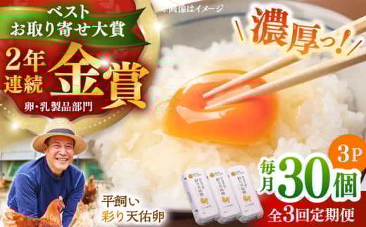 【平飼い卵】【全3回定期便】黄身の濃厚なコクと白身の甘み!たたらの里平飼い 彩り天佑卵 30個入り(10個×3P)/ たまご 卵 放牧卵 タマゴ 生卵 国産 平飼い 放し飼い 卵焼き 卵かけご飯 朝食 朝ごはん ご褒美 コク 旨み 贅沢 お取り寄せ 毎日食べたい卵 美容 健康 単品 定期便 人気 高評価 ランキング 島根県雲南市/株式会社たなべたたらの里(たなべ森の鶏舎) [AIDL002]