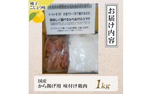 - 唐揚げ 1kg 冷蔵 柚子胡椒 味 新鮮 唐揚げ 1kg 味付け 柚子こしょう 鶏肉 肉 簡単調理 惣菜 おつまみ ごはん からあげ から揚げ 鶏肉 なだまさ 福岡県 川崎町