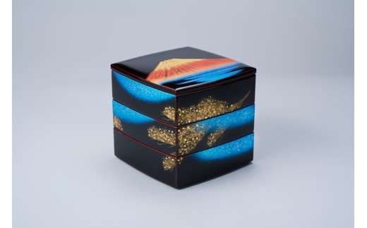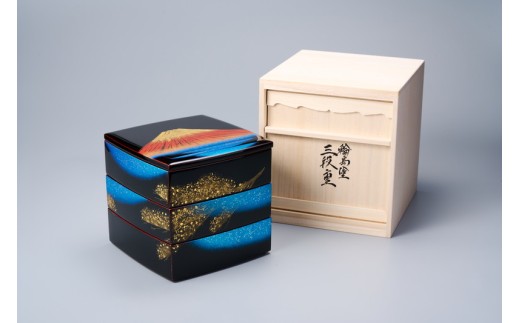 - 輪島塗〈大藤漆器店〉三段重(6.0寸) 溜内朱 青に松沈金[髙島屋選定品]
