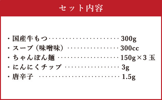 博多もつ鍋 3人前セット 味噌味 牛もつ300g ちゃんぽん麺つき 小腸