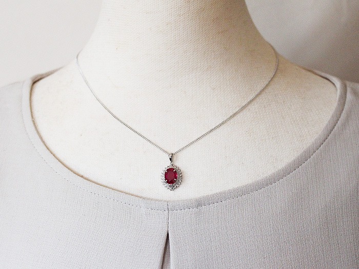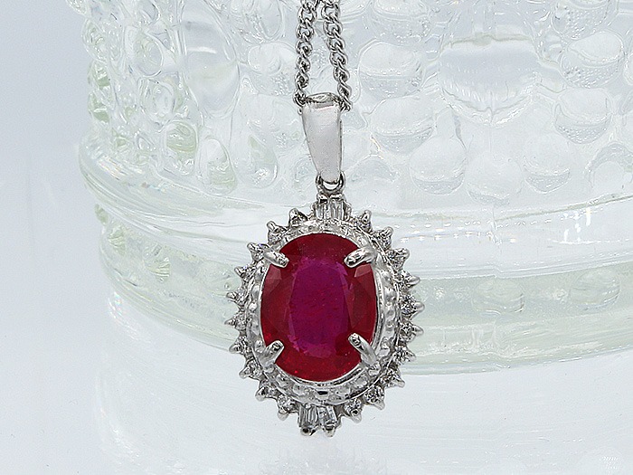- ルビー ペンダント 2ct K18WG 大粒 (12372) BR-51