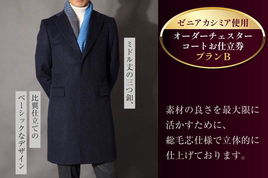 CG115「Lonner(ロンナー)」 オーダーチェスターコートお仕立券<プランB>[BSモデル ブルーステッチモデル 島原ソーイング ゼニアカシミア 1着分]