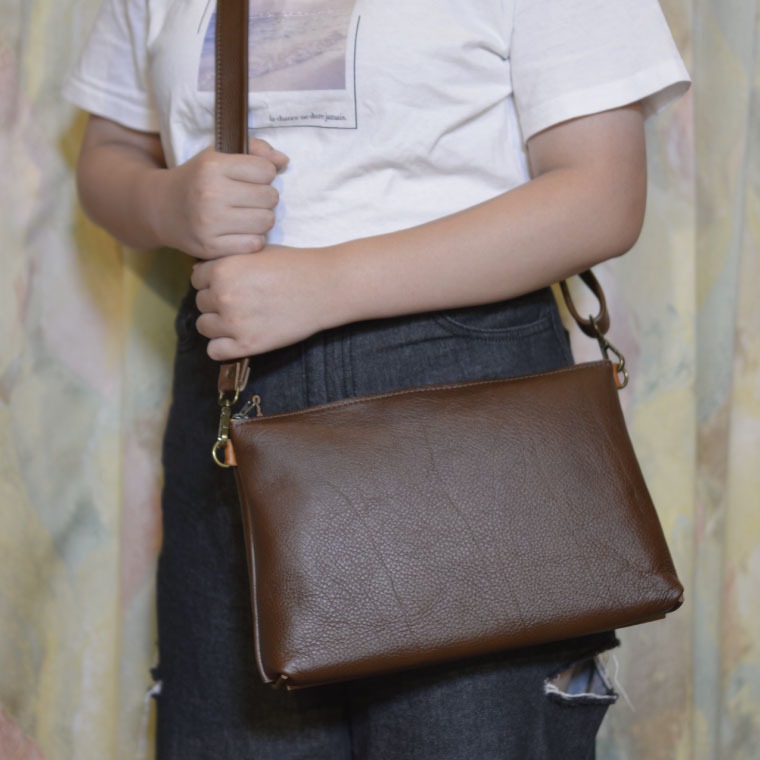 益子の革工房maharoのショルダーポーチ(L)キャメルブラウン|栃木県 益子町 ふるさと納税 ショルダーポーチ 牛革 手作り (AX107-1)