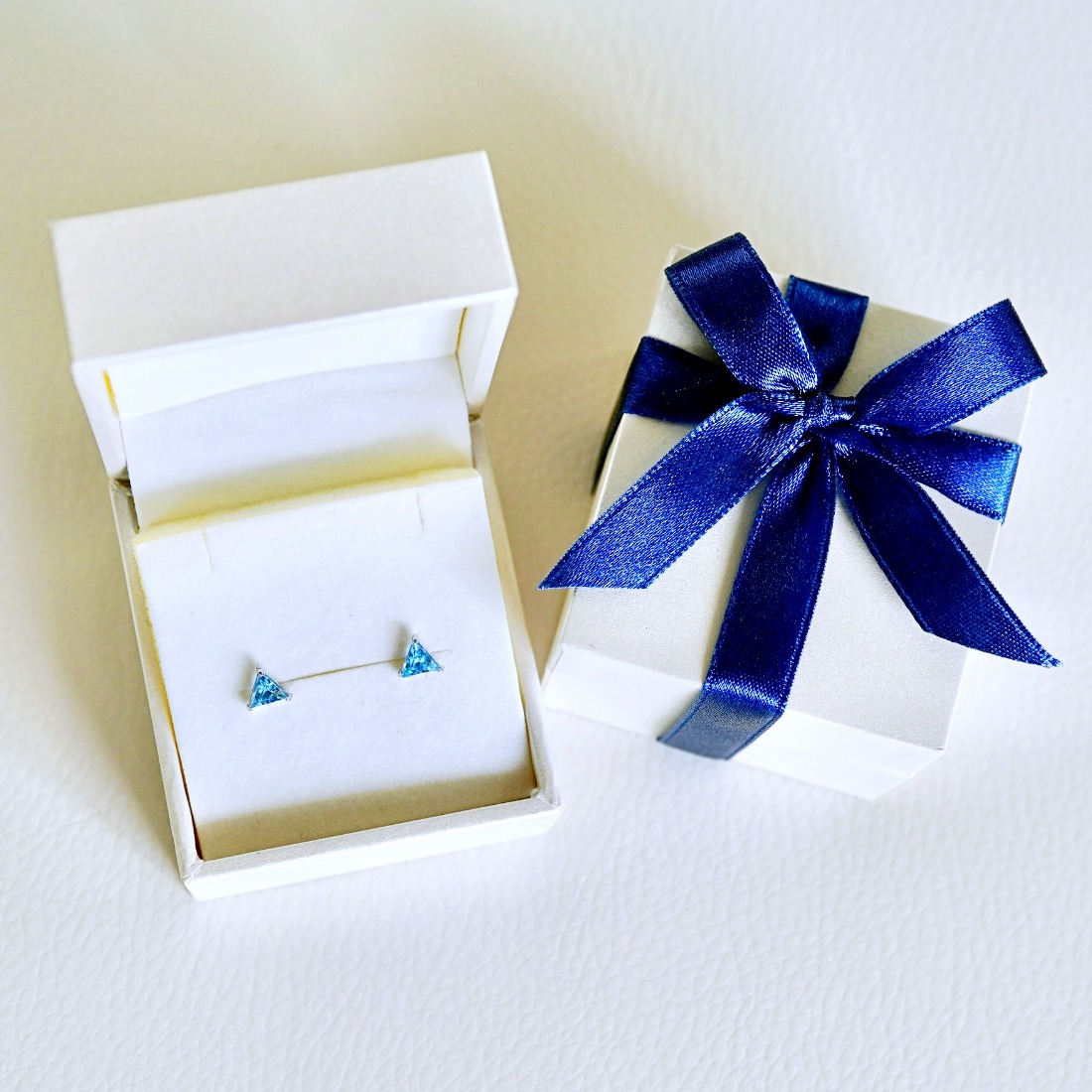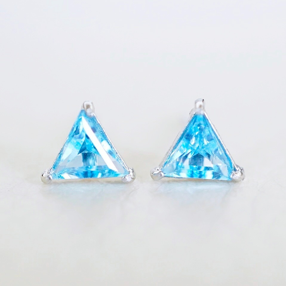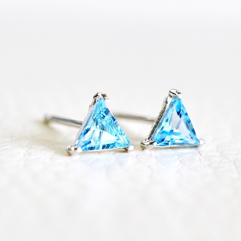 K14WG ホワイトゴールド ブルートパーズ 三角 トリリアントカット 4mm ピアス 保証書付 KO-0045 SWAD053