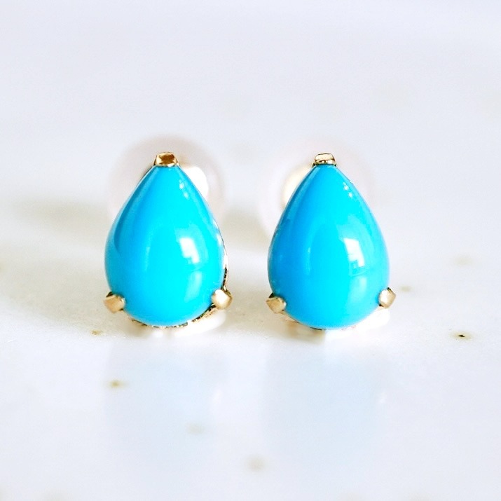 K18 イエローゴールド ターコイズ トルコ石ペアシェイプ 一粒石 ピアス 保証書付 KO-0047 SWAD060