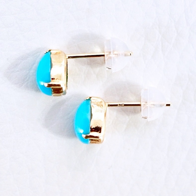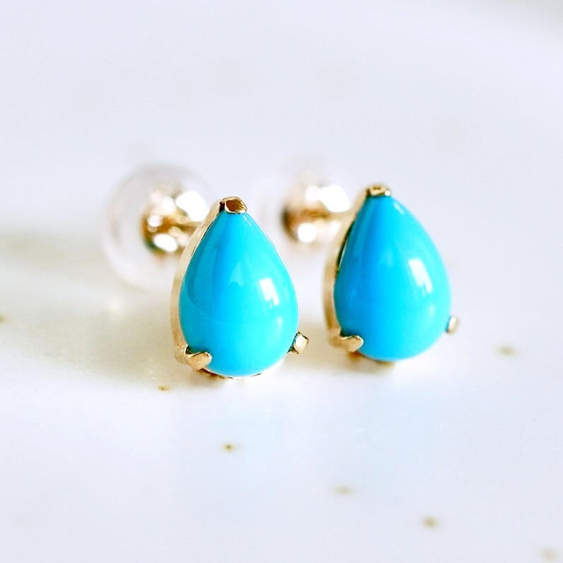 - K18 イエローゴールド ターコイズ トルコ石ペアシェイプ 一粒石 ピアス 保証書付 KO-0047 SWAD060