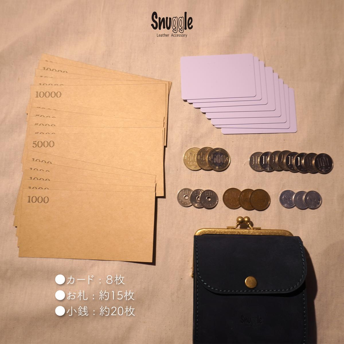 - 【4色展開】がま口ミドルウォレット 革小物 ハンドメイド 手縫い 一点物 財布 スナッグルレザー